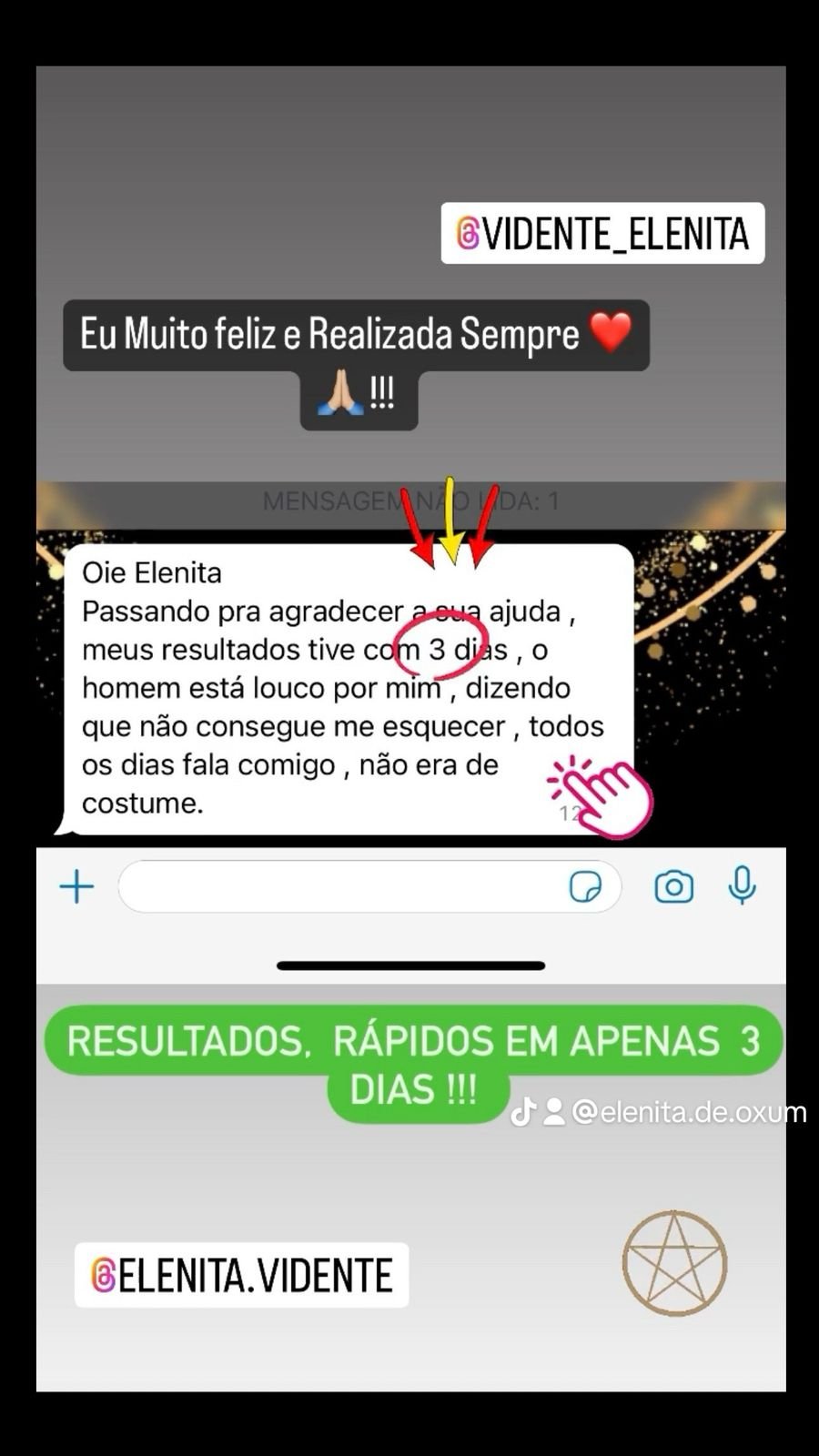 Conecte-se com a energia do universo e transforme sua vida com os poderosos trabalhos espirituais de Elenita. Como mestra em tarô, união amorosa e trabalhos de luz, Elenita guia você no caminho da prosperidade, proteção e equilíbrio emocional. Venha descobrir os segredos do universo e encontrar as respostas que você busca.